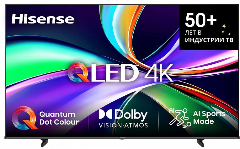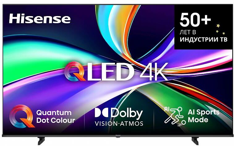 Hisense 75E7Q — 75-дюймовый 4K QLED телевизор (2025) Изображение Тип панели: ADS (аналог IPS) Разрешение: 4K UHD (3840?2160) Подсветка: QLED + DLED Яркость (типичная): 385 нит Цветовой охват: 90% DCI-P3 Частота обновления: 144 Гц Поддержка HDR: Dolby Vision, HDR10, HDR10+, HLG, Dolby Vision IQ Функции улучшения изображения: AI 4K Upscaler, MEMC, Filmmaker Mode Игровые возможности Режим HDR для игр: Да FreeSync Premium: Да VRR: 48–144 Гц ALLM: Да Игровой режим: 144Hz Game Mode PRO Input Lag: ~13 мс Дополнительно: Game Bar Аудио Акустика: 2.0.2 канала (2?10 Вт + 2?8 Вт) Поддержка: DTS Virtual X, AC-4, NICAM/A2 Dolby Atmos: Нет Смарт-функции Платформа: VIDAA U9 Голосовые помощники: Amazon Alexa (встроенный), Vidaa Voice Поддержка AirPlay 2, Screen Sharing, контент с Android Браузер: Да (Odin) HbbTV: 2.0.4 Подключения Wi-Fi: 802.11 a/b/g/n/ac (2.4G/5G) Bluetooth: 5.0 HDMI: 4 порта (все HDMI 2.1, включая eARC, VRR, ALLM) USB: 1?USB 3.0, 1?USB 2.0 CI+ слот, Ethernet, S/PDIF, AV вход/