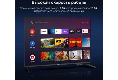 Экран: Технология экрана: LED Серия: Android TV™ Диагональ экрана (дюймы): 43 " Разрешение: 3840x2160 Покрытие экрана: матовое Соотношение сторон: 16:9 Яркость экрана: 300 кд/м2 Контрастность: 5.000:1 Время отклика пикселя: 9.5 мс Углы обзора (гориз / верт): 178x178 Частота обновления: 60 Гц Функции Стандарт разрешения экрана: 4K Ultra HD Поддержка: SMART TV ДА Встроенный Wi-Fi: да Встроенный Bluetooth: ДА Телетекст: ДА Таймер сна: ДА Таймер включения / выключения: ДА Родительский контроль: ДА Функция Time Shift: ДА Гид по программам (EPG): ДА Процессор изображения: Mali G52 MP2 Прогрессивная развертка: ДА Цифровое шумоподавление: ДА Поддержка DLNA: ДА Разъемы и интерфейсы Антенный вход: 2 Количество HDMI портов: 3 Разъем USB: 2 Количество HDMI 2.1: 3 Разъем CI+ / PCMCIA: 1 Разъем композитный (видео): 1 Разъем S / PDIF оптический: 1 Разъем RJ-45 (Ethernet): 1 Разъем для наушников: 1