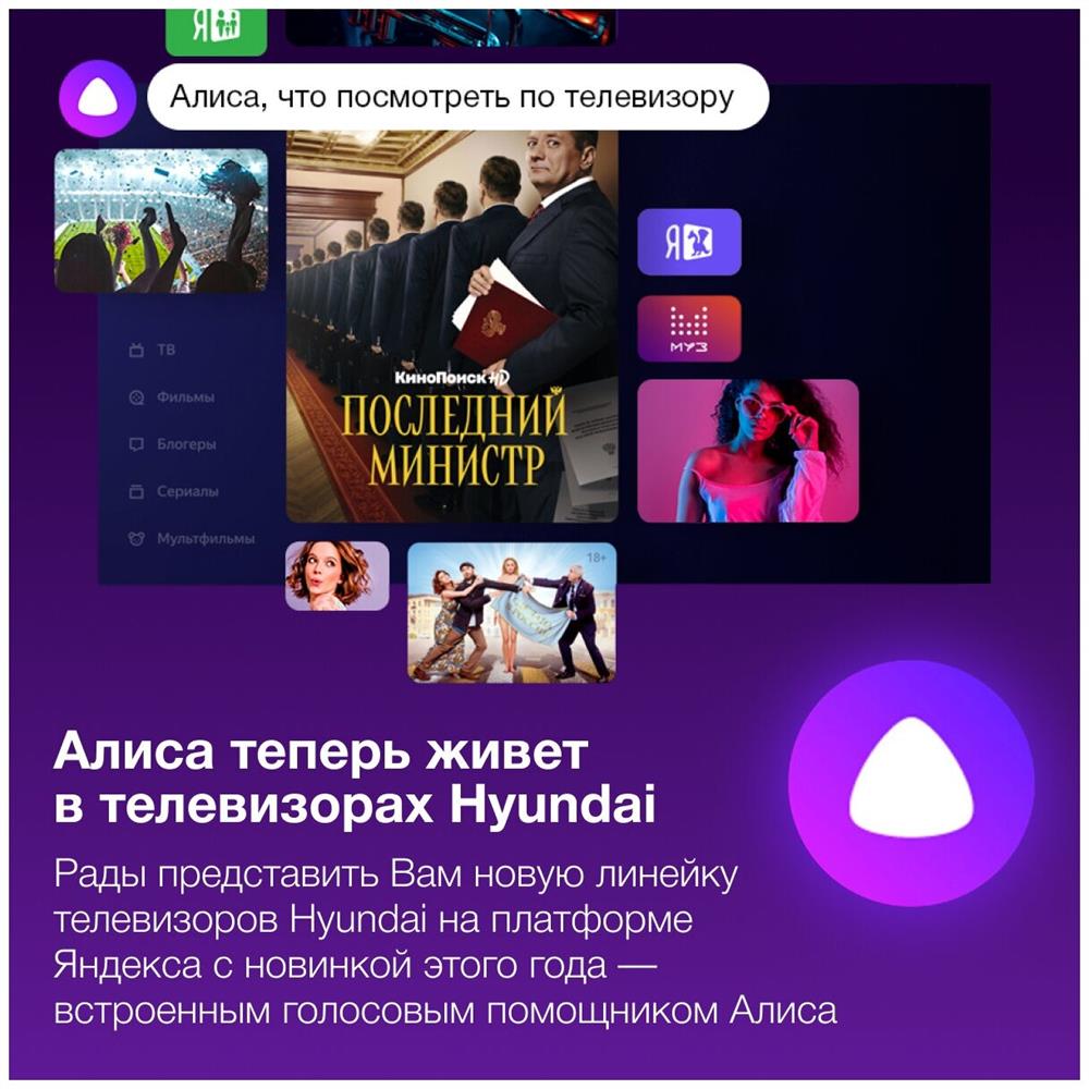 Телевизор HYUNDAI H-LED55BU7003 UHD SMART Яндекс
