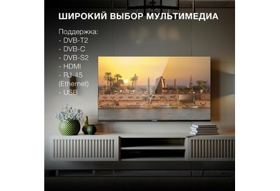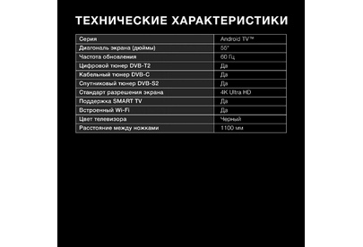 Технология экрана LED Серия Android TV™ Диагональ экрана (дюймы) 55 " Разрешение 3840x2160 Покрытие экранаглянцевое Соотношение сторон 16:9 Яркость экрана 350 кд/м2 Контрастность 5.000:1 Время отклика пикселя 6.5 мс Углы обзора (гориз / верт )178x178 Частота обновления 60 Гц Стандарт разрешения экрана 4K Ultra HD Поддержка SMART TV ДА Встроенный Wi-Fi да Встроенный Bluetooth да Телетекст ДА Таймер сна ДА Таймер включения / выключения ДА Родительский контроль ДА Функция Time Shift ДА Гид по программам (EPG) ДА Процессор изображения CA53*4 Прогрессивная развертка ДА Цифровое шумоподавление ДА Поддержка DLNA ДА