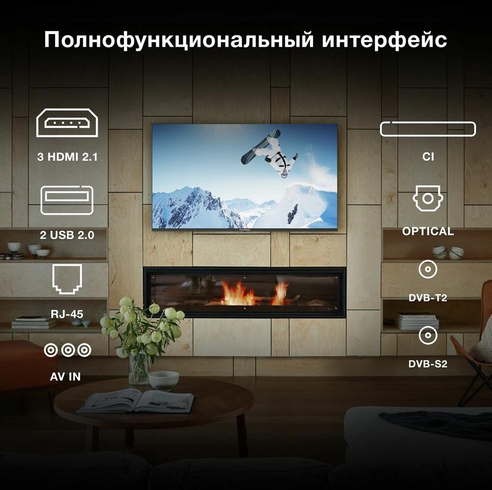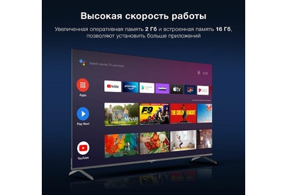 Экран: Технология экрана: LED Серия: Android TV™ Диагональ экрана (дюймы): 65 " Разрешение: 3840x2160 Покрытие экрана: матовое Соотношение сторон: 16:9 Яркость экрана: 400 кд/м2 Контрастность: 6.000:1 Время отклика пикселя: 6.5 мс Углы обзора (гориз / верт): 178x178 Частота обновления: 60 Гц Функции Стандарт разрешения экрана: 4K Ultra HD Поддержка SMART TV: ДА Встроенный Wi-Fi: да Встроенный Bluetooth: ДА Телетекст: ДА Таймер сна: ДА Таймер включения / выключения: ДА Родительский контроль: ДА Функция Time Shift : ДА Гид по программам (EPG): ДА Процессор изображения: Mali G52 MP2 Прогрессивная развертка: ДА Цифровое шумоподавление: ДА Поддержка DLNA: ДА Разъемы и интерфейсы Антенный вход: 2 Количество HDMI портов: 3 Разъем USB: 2 Количество HDMI 2.1: 3 Разъем CI+ / PCMCIA: 1 Разъем композитный (видео): 1 Разъем S / PDIF оптический: 1 Разъем RJ-45 (Ethernet): 1 Разъем для наушников: 1