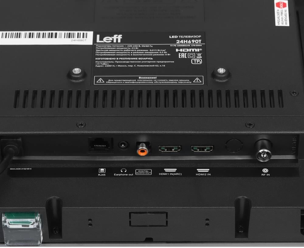 24" (60см) SALUT SMART TV, DLED, HDready (1366*768), DVB-T2/C, Dolby AC-3; 16:9, яркость 200 кд/м2, контрасность 3000:1, 16.7 млн. цветов, аудио 2х3 Вт; 2xHDMI, 2хUSB, MINI AV IN, ANT, COAXIAL, CI+ slot, выход под наушники, LAN(RJ-45); Wi-Fi, Bluetooth; USB-медиаплеер(PVR), телетекст, родительский контроль, Timeshift; VESA 100х100; цвет: чёрный
