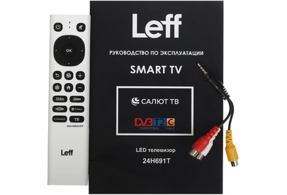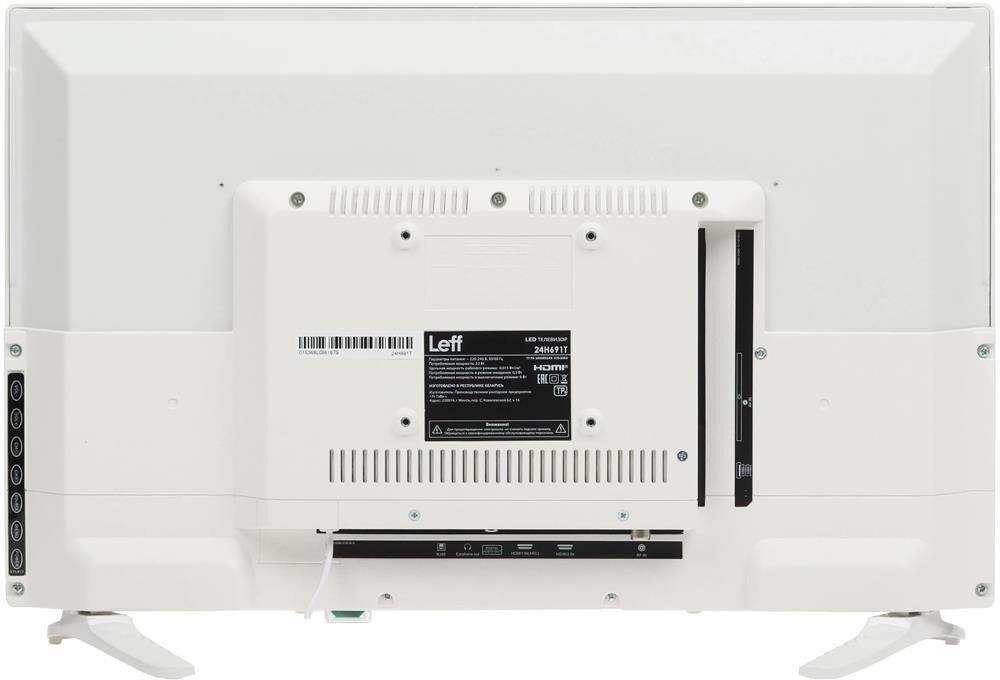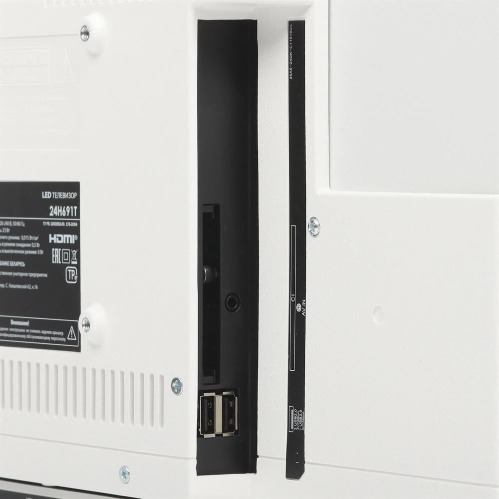 24" (60см) SALUT SMART TV, DLED, HDready (1366*768), DVB-T2/C, Dolby AC-3; 16:9, яркость 200 кд/м2, контрасность 3000:1, 16.7 млн. цветов, аудио 2х3 Вт; 2xHDMI, 2хUSB, MINI AV IN, ANT, COAXIAL, CI+ slot, выход под наушники, LAN(RJ-45); Wi-Fi, Bluetooth; USB-медиаплеер(PVR), телетекст, родительский контроль, Timeshift; VESA 100х100; цвет: белый