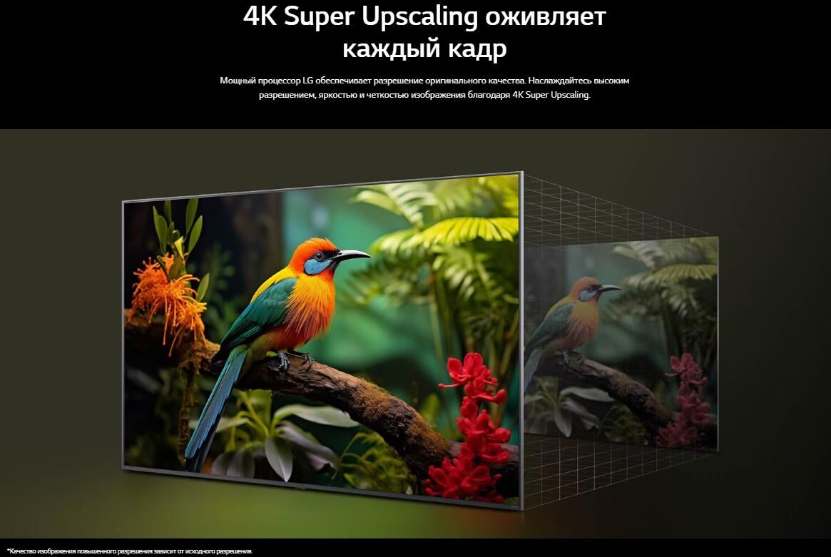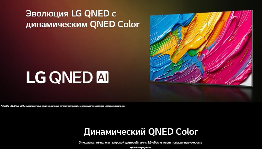 Тип процессора Интеллектуальный процессор α7 4K Gen8.Масштабирование изображения (ИИ) 4K Super Upscaling. Яркость (ИИ) Да.Тип HDR HDR10 / HLG. Операционная система (ОС) webOS 25.Интеллектуальное распознавание голоса Да. Пульт Magic Remote Встроенный.Приложение Smartphone Remote Да (LG ThinQ). Выходная мощность 20 Вт.Система динамиков 2.0 Канал. Направленность динамиков Вниз. HDMI-вход 3 шт.: поддержка eARC, ALLMSimplink (HDMI CEC) Да. Обратный звуковой канал (HDMI) eARC (HDMI 2).USB-вход 2 шт. (v2.0) Wi-Fi Да (Wi-Fi 5).Bluetooth Да (5.1). Питание 100-240 В ~ 50/60 Гц.Потребление в режиме ожидания (Вт) < 0,5 Вт. Диджитал ТВ-прием DVB-T2/T (наземное вещаниеl), DVB-C (кабель), DVB-S2/S (спутник).Аналоговый ТВ-прием Да. Тип экрана 4K QNED.Разрешение экрана 4K Ultra HD (3840 x 2160). Тип подсветки Edge.Частота обновления 60 Гц. Цветовой диапазон Dynamic QNED Color. VESA (ШxВ) 600 x 400.