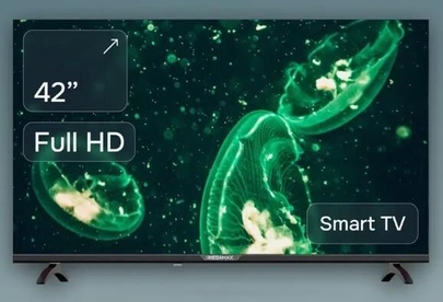42", LED, FHD, frameless, 50-60Hz, 16: 9, DVB-T2 / DVB-T / DVB-C, CI+ slot, USB CINEMA HD ( mkv, mp4, avi, mov, XviD, MPEG4,JPEG), 3xHDMI, VESA 200x100, Smart 1GB/16G, Android 11, Wi-Fi