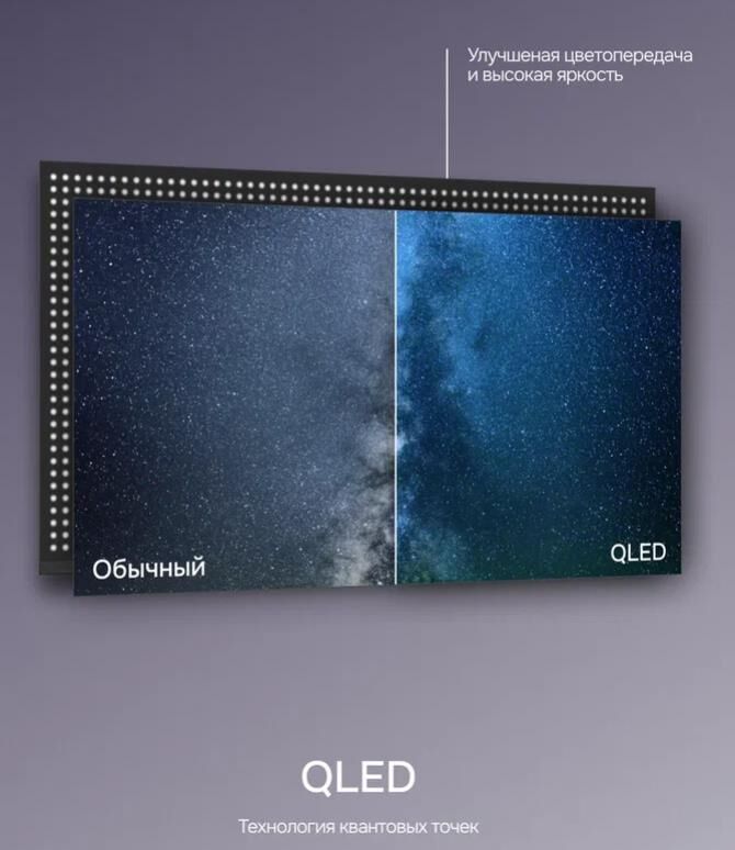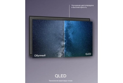 Диагональ (дюйм): 50. Диагональ (см): 127. Разрешение экрана: 3840x2160 (Ultra HD). QLED, SMART. Операционная система: Android Open Source Project (AOSP) . Версия операционной системы: Android 11.0. DVB-T2. DVB-S2. DVB-C. Wi-Fi 5.0. LAN. Наличие Bluetooth, голосовой поиск. Ci слот (шт): 1. USB-порт (шт): 2. HDMI (шт): 3. Оперативная память (Гб): 1,5. Встроенная память (Гб): 16