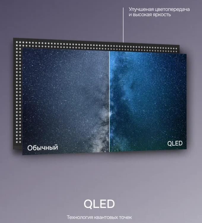 Диагональ (дюйм): 65. Диагональ (см): 165. Разрешение экрана: 3840x2160 (Ultra HD). QLED, SMART. Операционная система: Android Open Source Project (AOSP) . Версия операционной системы: Android 11.0. DVB-T2. DVB-S2. DVB-C. Wi-Fi 5.0. LAN. Наличие Bluetooth, голосовой поиск. Ci слот (шт): 1. USB-порт (шт): 2. HDMI (шт): 3. Оперативная память (Гб): 1,5. Встроенная память (Гб): 16