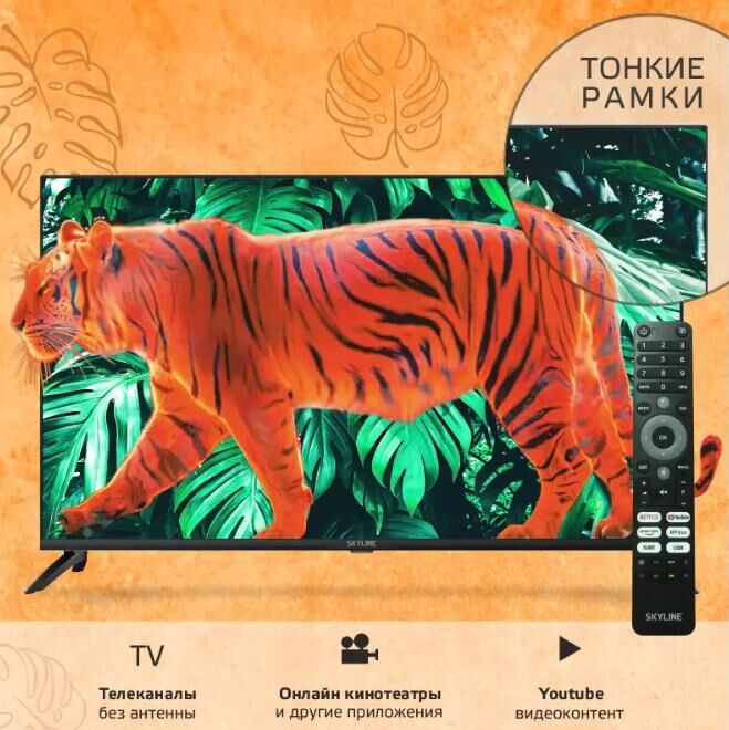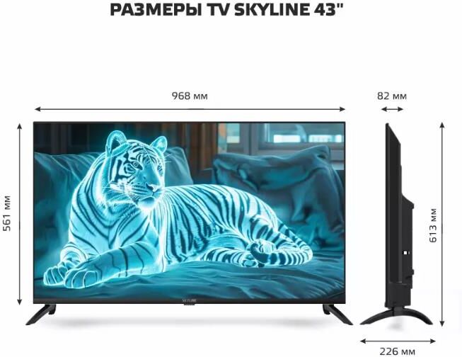 frameless Android 11(AOSP)1G+8G, Диагональ экрана 43" (108 см) Системы цветности аналогового ТВ: SECAM, PAL Системы цветности для AV: NTSC, PAL Цифровой тюнер DVB/Т2/C SMARTTV Wi-Fi Декодеры стереозвука NICAM, А2, АСЗ Формат изображения: 16:9 Разрешение экрана 1920х1080 Динамический контраст 90000:1 Яркость 250 кд/м2 Угол обзора (гор/верт) 178°/178° Цифровой 3D фильтр Количество цветов 16,7 млн. Время отклика 8 мс Меню на русском , английском языках Аудио 2х8 Вт Входы/выходы: Антенный вход Композитный видео/аудио вход Аудио выход З.5мм Зх HDMI 2 х USB CI слот LAN OPTICAL Напряжение 100-2408 ~50/60Гц Максимальная потребляемая мощность 74 Вт Потребляемая мощность в режиме ожидания - 0,5 Вт Удельная мощность рабочего режима: 0,013 Вт/кв.см Потребляемая мощность в выключенном режиме: О Вт Размеры с подставкой: 957х61 Зх207 мм Размеры без подставки: 957х558х64 мм Вес: 6.0 кг VESA: 200х200 мм