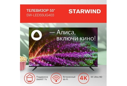 Телевизор STARWIND SW-LED55UG403 ОС SMART Яндекс.ТВ Ultra HD черный Frameless