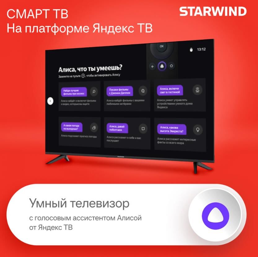 Телевизор STARWIND SW-LED55UG403 ОС SMART Яндекс.ТВ Ultra HD черный Frameless