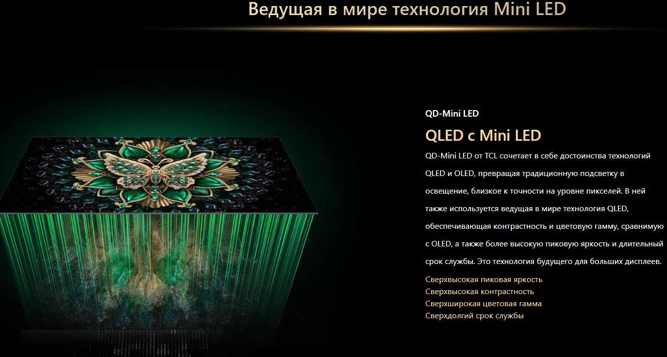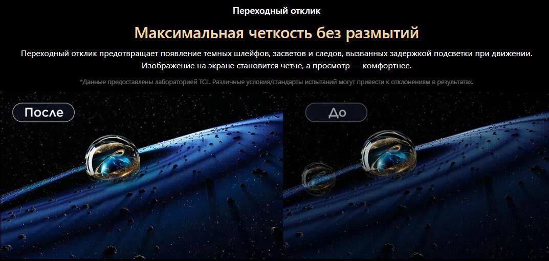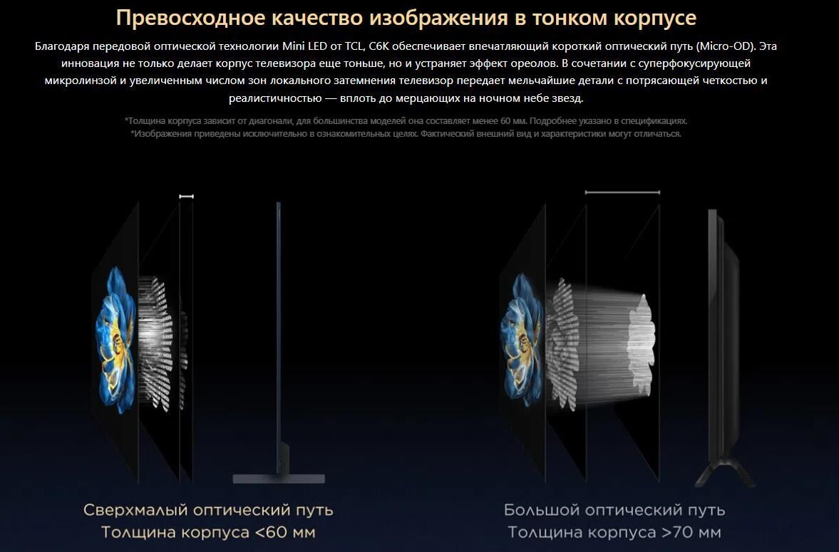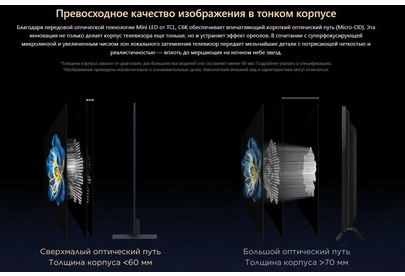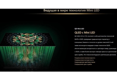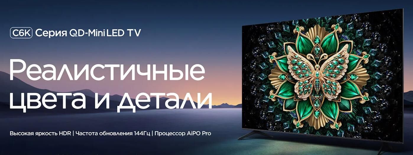 Модель 55C6K Год создания модели 2025 Экран/дисплей Диагональ 55 дюймов (139,7 см) Соотношение сторон/формат экрана 16:9 Разрешение 4K Ultra HD (3840x2160) Подсветка Mini LED Mаксимальная яркость 450 кд/кв.м Горизонтальный угол обзора 178° Вертикальный угол обзора 178° Технология дисплея QLED Частоты обновления Частота вертикальной развёртки (цифровой интерфейс) 144 Гц Электропитание и энергопотребление Частота переменного тока 50 Гц - 60 Гц Энергопотребление (режим ожидания) 0.5 Вт Энергопотребление (среднее) 100 Вт Энергопотребление (максимальное) 220 Вт Размеры,вес,цвет Ширина 122.9 см Высота 71.3 см Глубина 5.59 см Вес 12.2 кг Ширина с подставкой 122.9 см Высота с подставкой 77.6 см Глубина с подставкой 29.7 см Вес с подставкой 12.4 кг Цвет Черный Эргономика Крепление VESA да VESA стандарты VESA 300x300 Съемная подставка да Тв-тюнер ТВ-тюнер Analog (NTSC/PAL/SECAM), DVB-C, DVB-S, DVB-S2, DVB-T, DVB-T2 Операционная система Операционная система Google TV Аудио Динамики 2x10 Вт+20 Вт