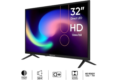 Диагональ: 32 дюйм. Разрешение: 1366x768 HD Ready. Игровой ТВ: нет. Поддержка HDR: нет. Тип светодиодной подсветки: Direct LED. Настенное крепление (VESA): 100x100 мм. Цвет: черный. Телетекст: да. Технологии приема сигнала: DVB-T2; DVB-C; DVB-S; DVB-S2. Приём DVB-T2: да. Приём DVB-C: да. Приём DVB-S: да. Приём DVB-S2: да. Акустическая система: 16 Вт (2x8 Вт). Интерфейсы: HDMI, USB 2.0 тип A, RCA аудио, RCA видео. Беспроводные интерфейсы: нет. Особенности: цифровое шумоподавление. Пульт ДУ: ИК. Количество интерфейсов USB: 2 шт. Количество входов HDMI: 3 шт. Версия HDMI: 1.4. Интерфейс Ethernet: нет. Поддержка CI+: да. Выход аудио: коаксиальный. Потребляемая мощность: 56 Вт. Потребляемая мощность в выключенном режиме: 0.5 Вт. Воспроизведение мультимедиа с USB: да. Запись на USB устройство: да.