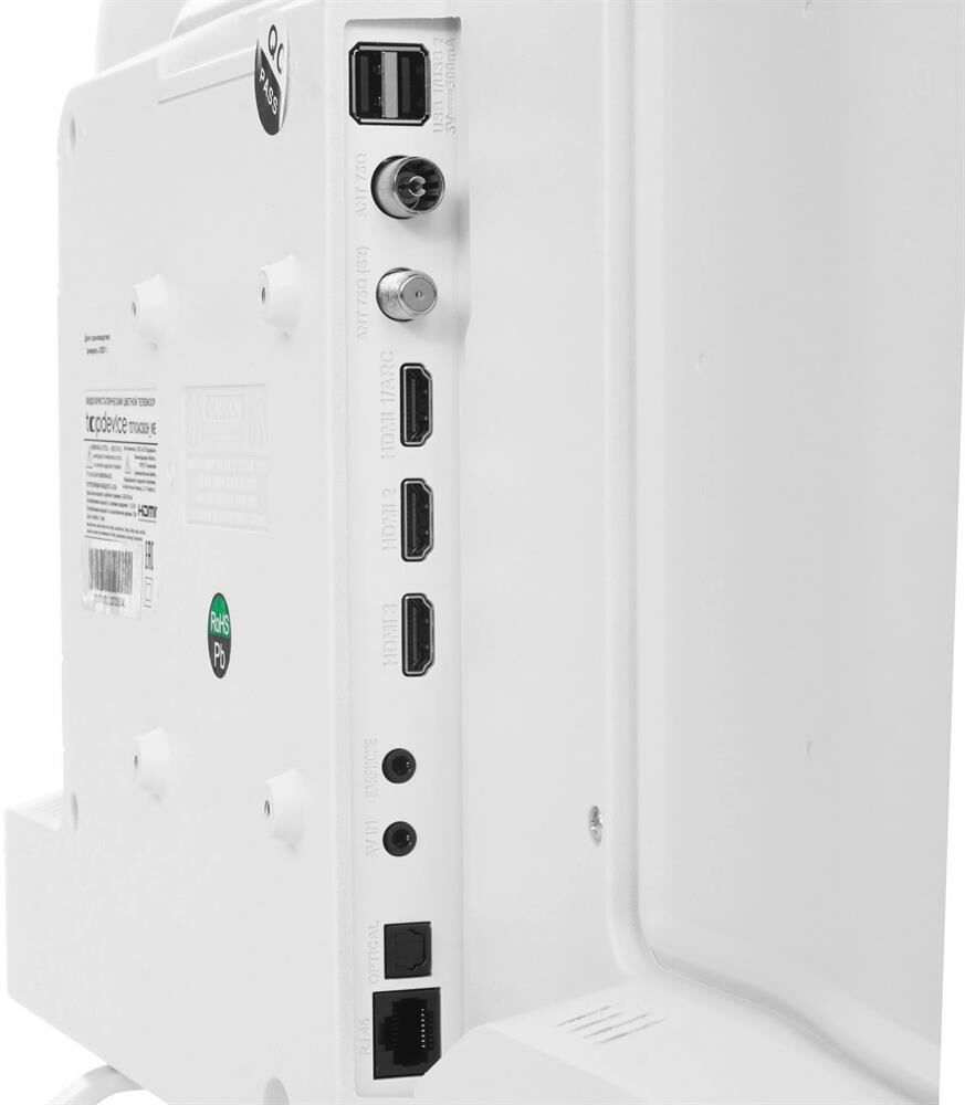 Дисплей Яркость 200 Контрастность 3000:1 HDR Нет Угол обзора 178/178 Время отклика 8,5 мс СМАРТ ТВ Операционная система YaOS Wi-Fi 2.4Ггц Оперативная память 1 Гб Память внутреннего накопителя, Гб 8 Звук Технология Dolby audio Эквалайзер Да Встроенные динамики 2х3 Вт Тюнер / телевещание Поддержка цифрового телевещания DVB-T2/C/S2 Аналоговый тюнер Да CI (Common Interface) CI+ Телетекст Нет Энергопотребление Мощность 36 Вт Источник питания 110-240 В, 50 Гц Класс энергоэффективности А+ Потребление в режиме ожидания < 0.5 Вт Автоотключение Да Подключения (разъемы) HDMI 3 USB 2 Антенный вход 2 Ethernet RJ45 Композитный вход (AV) Да Цифровой оптический выход Да Коаксиальный выход Нет CI (Common Interface) Да Bluetooth Да Разъём на наушники Да