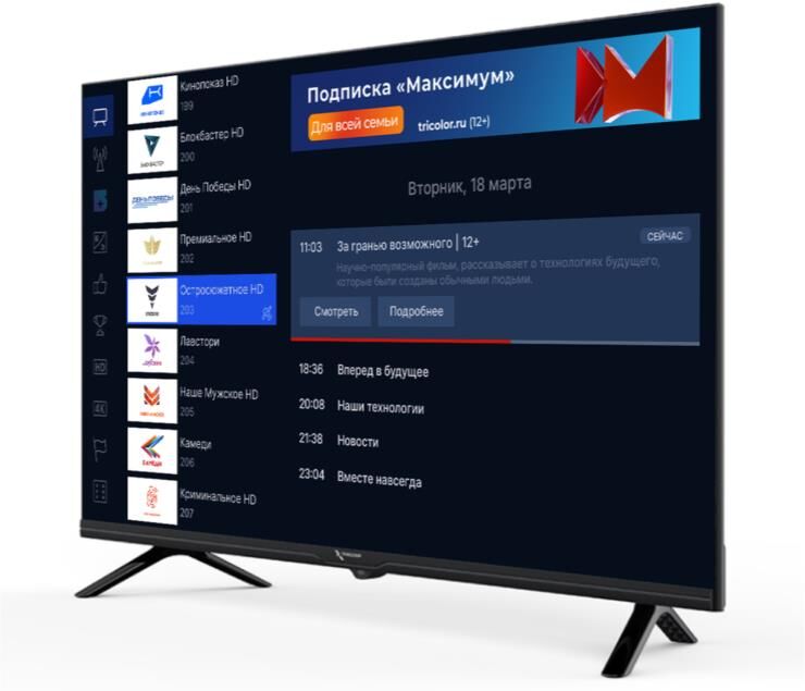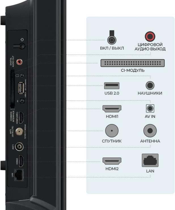 Современный телевизор с функцией SMART TV – это высокое качество изображения, объемное звучание, лаконичный дизайн, тонкие рамки, а также пульт с Bluetooth – управлением! Приобретая телевизор , Вы получаете в подарок онлайн-кинотеатр с годом подписки на приложение « Кино и ТВ». Приложение уже установлено, дополнительных манипуляций производить не требуется, что очень удобно в том случае, если Вы покупаете телевизор своим близким. Мы уже подумали обо всем за Вас. Вам остается только управлять просмотром любимых фильмов или передач: перематывайте, если отвлеклись на интересном моменте, ставьте на паузу и пользуйтесь архивом передач! Также, есть возможность установить любые другие приложения. Телевизор , 32" обладает высоким уровнем контрастности, имеет минимальное время отклика. Телевизор работает на базе операционной системы Android 11 и имеет оперативную память объемом 1,5 Гб и 8 Гб постоянной памяти. Этого достаточно для просмотра потокового видео и установки приложений. Телевизор работает в сетях спутниково