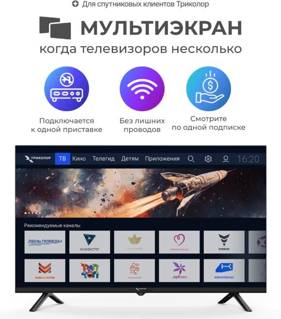 Телевизор ТРИКОЛОР H32H5000SA, SMART TV, 32?, черный