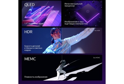 Тип QLED Диагональ экрана 55" (140 см) Тип матрицы QLED Разрешение экрана 4K UHD Разрешение, пикс 3840x2160 Формат экрана 16:9 Поверхность экрана матовая Частота обновления экрана 60 Гц Яркость 550 кд/м2 Контрастность 4000:1 Угол обзора по горизонтали 178 ° Угол обзора по вертикали 178 ° Технология улучшения четкости МЕМС Поддержка HDR да Формат HDR HDR10 Общая выходная мощность 44 Вт Количество динамиков 6 Технология обработки звука Dolby Audio Объемное звучание да Поддерживаемые ОС Android, iOS Smart TV есть Операционная система YaOS X Количество ядер процессора 4 Объем встроенной памяти 32 Гб Объем оперативной памяти 3 Гб Wi-Fi да Частота Wi-Fi 2.4, 5 ГГц Поддержка Bluetooth да Версия Bluetooth 5.1 Потребляемая мощность при работе 165 Вт VESA (размер крепления) 400x300