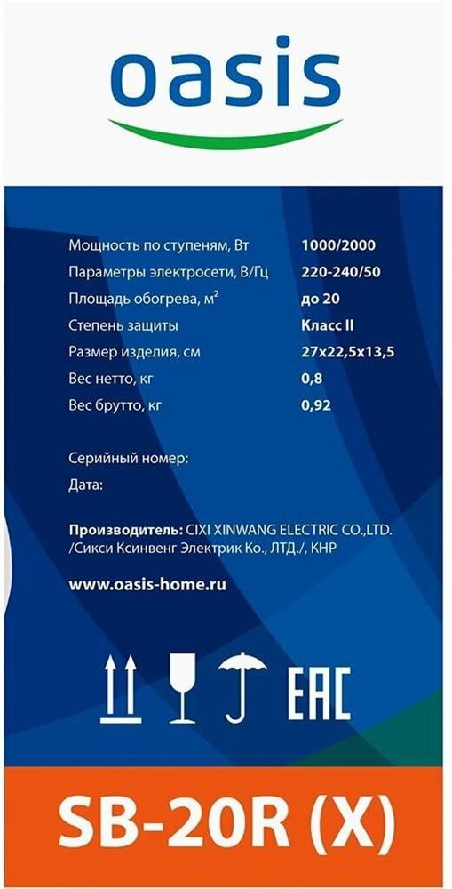 Тепловентилятор OASIS SP-20R