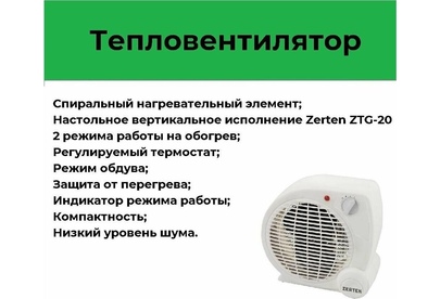 ип обогревателя тепловентилятор Площадь обогреваемого помещения 20 м? Тип нагревательного элемента спиральный Количество режимов работы 3 Функциональность Особенности регулировка температуры, термостат Управление механическое Установка напольная, настольная Дополнительно Системы защиты отключение при опрокидывании, отключение при перегреве Дополнительная информация напряжение: 220/240 В; ручка для перемещения; выключатель со световым индикатором; вентилятор Габариты и вес Ширина 21.5 см Толщина 13 см Высота 26.5 см Вес 0.9 кг