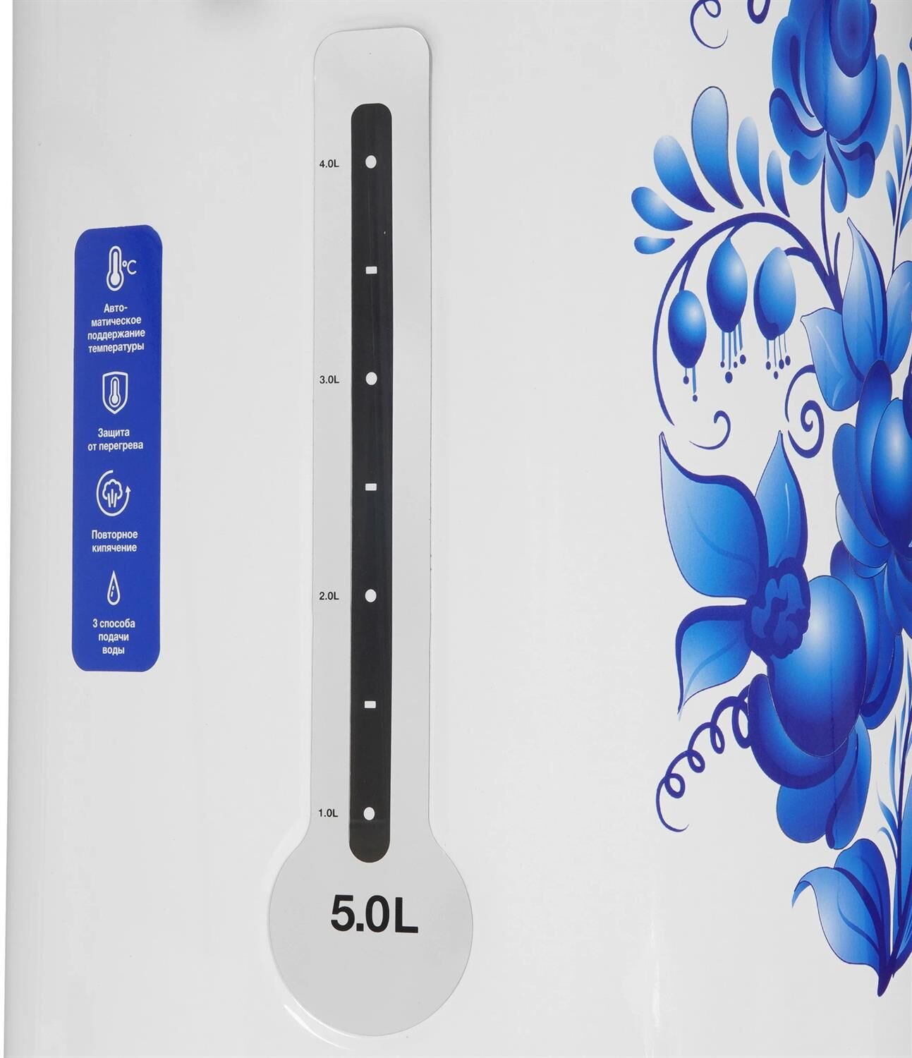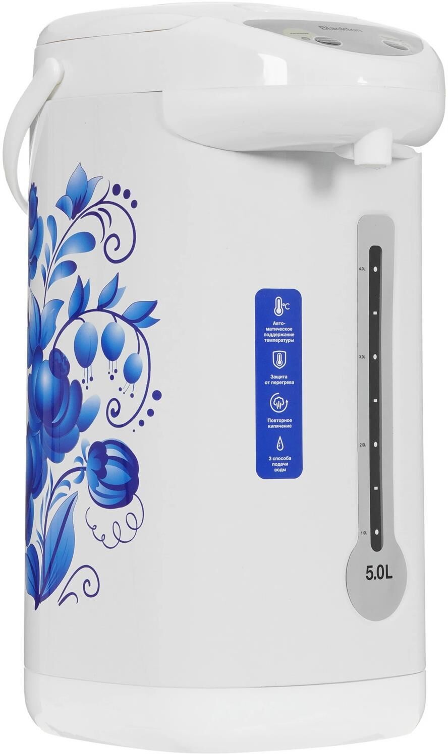 Общий объем 5л, Автоматическое поддержание температуры, Повторное кипячение, 3 способа подачи воды, Защита от включения без воды, Защита от перегрева, Блокировка крышки,Материал внутренней камеры нержавеющая сталь, Мощность в режиме поддержания температуры 35 Вт, Потребляемая мощность 750 Вт, Напряжение 220-240В, 50/60Гц