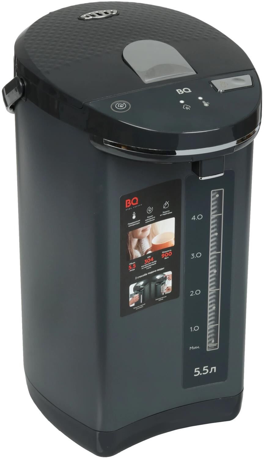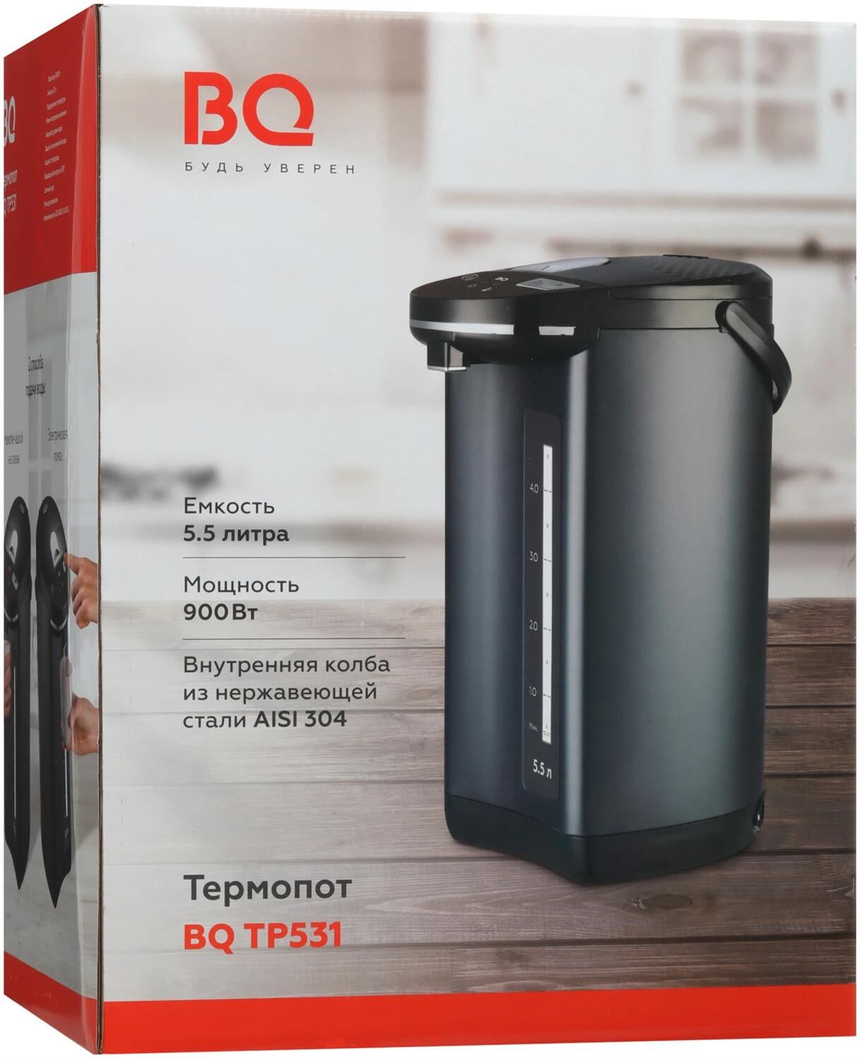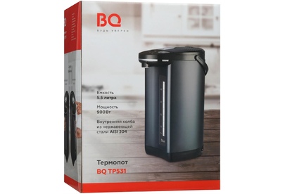 Термопот BQ TP531, Емкость 5.5 л. Большой объем емкости, чтобы вскипятить горячий чай для всей семьи, Мощность 900 Вт, Мощность в режиме поддержания температуры 35 Вт, Индикатор уровня воды . По индикатору легко ориентироваться в количестве налитой в т