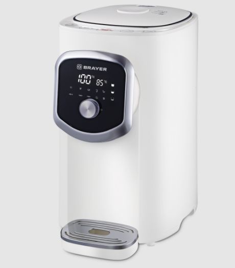 1093BR-WH Термопот BRAYER, 1200 Вт, 5 л, LED-дисплей, поддерж.темп для разн.напитков,охлождение, Мощность 1200 Вт. Максимальный объем 5 л. Подача воды с помощью автоматической помпы Поддержание температуры воды для разных напитков - для чая 95°С - для кофе 85°С - для травяного чая 65°С Функция быстрого охлаждения Функция повторного кипячения Режим длительного кипячения LED-дисплей с подсветкой Индикация уровня воды на дисплее Блокировка подачи воды Корпус из высококачественного термостойкого пластика Автоотключение при отсутствии воды Электропитание 220-240 В., 50-60 Гц.