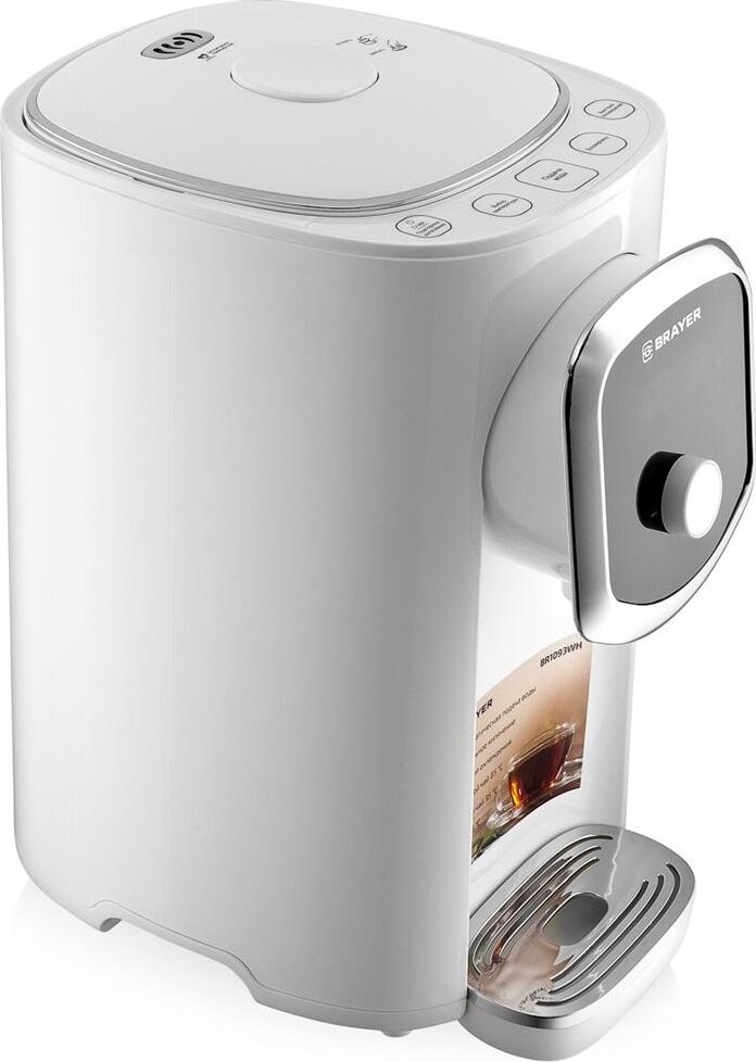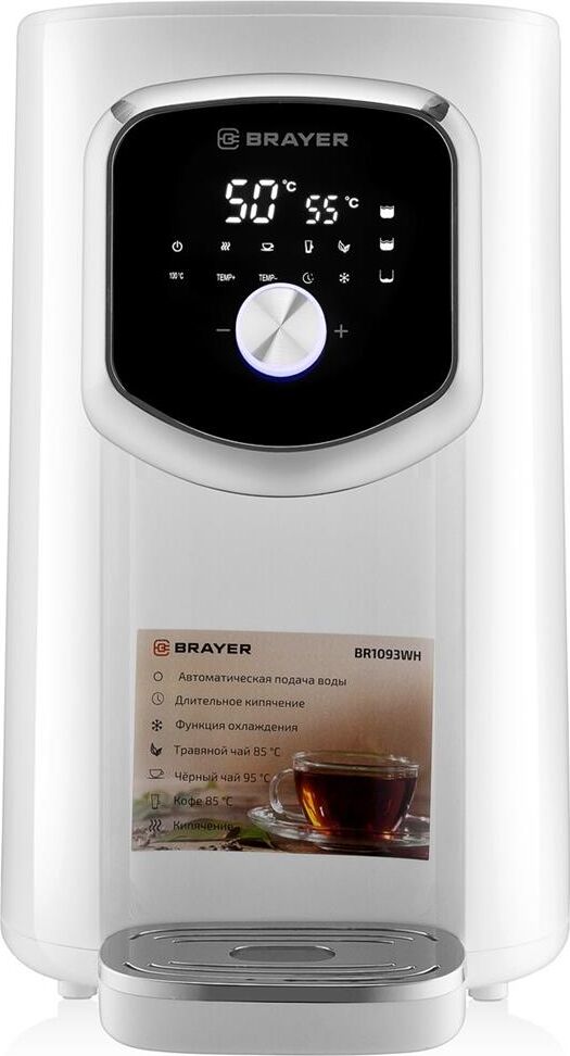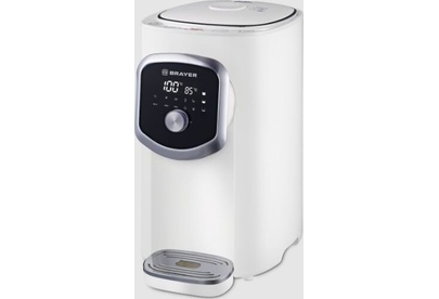 1093BR-WH Термопот BRAYER, 1200 Вт, 5 л, LED-дисплей, поддерж.темп для разн.напитков,охлождение, Мощность 1200 Вт. Максимальный объем 5 л. Подача воды с помощью автоматической помпы Поддержание температуры воды для разных напитков - для чая 95°С - для кофе 85°С - для травяного чая 65°С Функция быстрого охлаждения Функция повторного кипячения Режим длительного кипячения LED-дисплей с подсветкой Индикация уровня воды на дисплее Блокировка подачи воды Корпус из высококачественного термостойкого пластика Автоотключение при отсутствии воды Электропитание 220-240 В., 50-60 Гц.