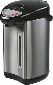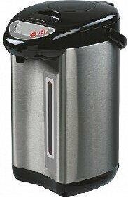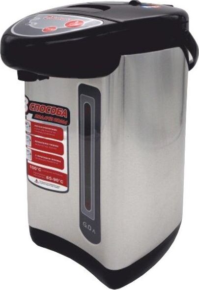 5,0 л, 750 Вт, повторное кипячение, поддержание температуры, 3 способа подачи воды (помпой, кнопкой на панели, нажатием чашкой), колба нерж.сталь. Цвет: металлик + чёрный.