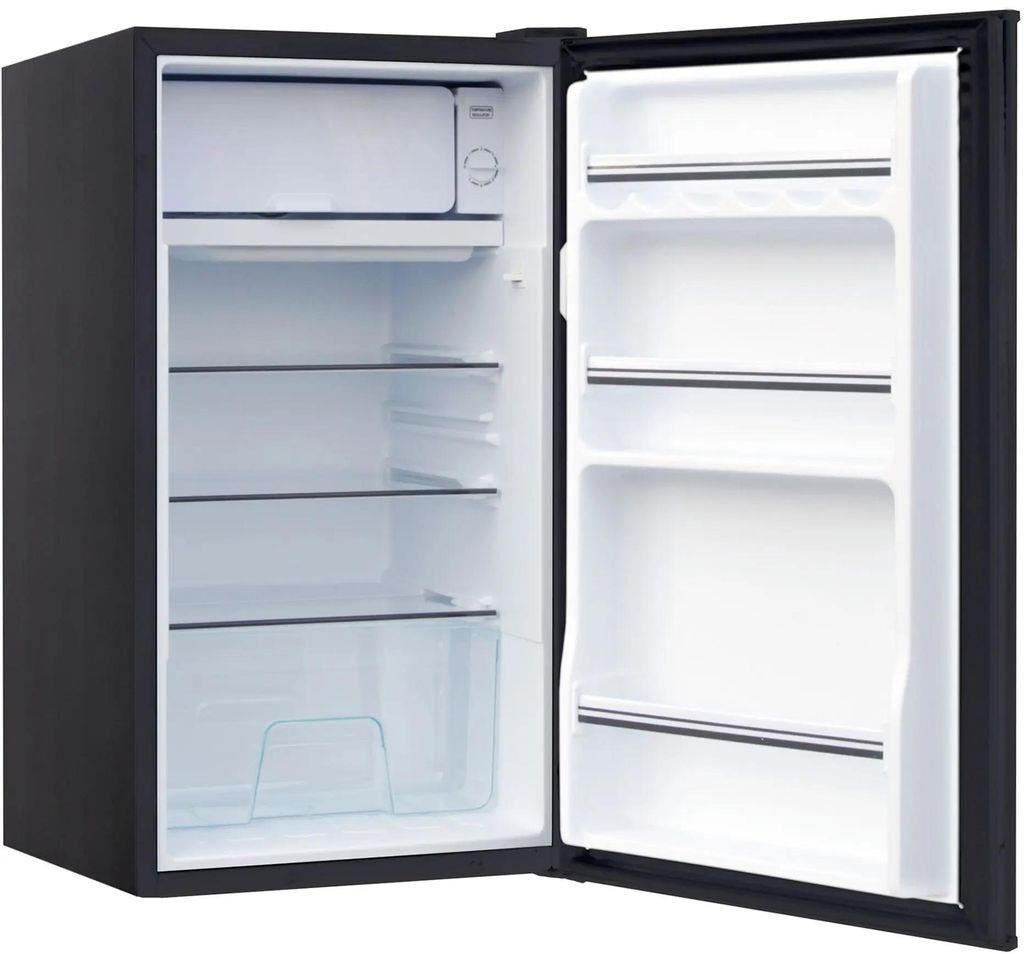 Количество камер: однокамерный. Тип управления: механическое. Класс энергопотребления: A. Система размораживания: ручное. Общий объем холодильника: 90. Общий объем холодильной камеры: 82. Уровень шума: 39. Количество компрессоров: один. Количество полок: 3. Материал полок: стекло. Тип: Холодильник. Общий объем дополнительных камер: 8. Хладагент: R600a. Количество ящиков: 1. Вес (нетто): 21. Количество дверей: 1. Особенности дополнительных камер: Низкотемпературное отделение. Тип компрессора: стандартный. Габариты упаковки (ед) ДхШхВ: 0.511x0.47x0.85. Вес упаковки (ед): 28. Количество полок на дверце: 2. Материал дверей: металл. Наличие морозильной камеры: морозильная камера отсутствует. Направление открывания двери: вправо. Гарантия: 12 мес.. Цвет: черный. Потребление энергии: 144.91 кВт*ч/год. Размеры (ШхВхГ): 44.5 х 83 х 46.5 см. Особенности холодильника: антибактериальный уплотнитель дверей. Особенности конструкции: перевешиваемые двери, регулируемые по высоте ножки. Климатический класс: N. Размеры (ШхВхГ)