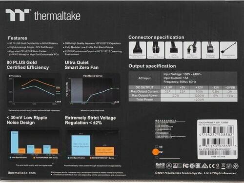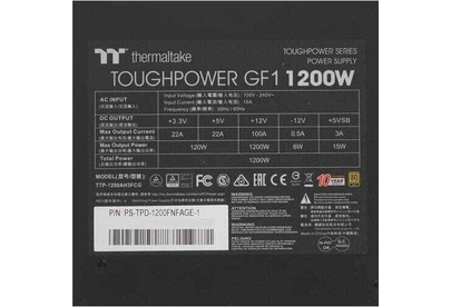 THERMALTAKE Блок питания ATX 1200W Toughpower GF1 80+ gold 24pin APFC 140mm fan 12xSATA Cab Manag RT
