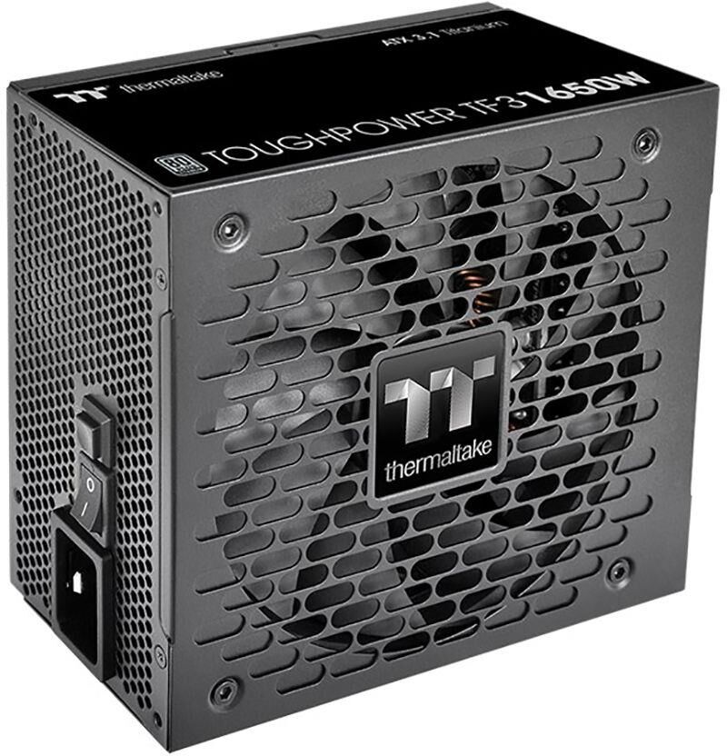 **Блок питания Thermaltake Toughpower TF 1650W (Fully Modular, 80 Plus Titanium)** Мощный и надёжный блок питания Thermaltake Toughpower TF с мощностью 1650 Вт — идеальное решение для высокопроизводительных систем. Благодаря сертификату 80 PLUS Titanium блок отличается высокой энергоэффективностью, что позволяет снизить энергопотребление и тепловыделение. **Основные преимущества:** * **Высокая мощность (1650 Вт)** — обеспечит стабильное питание даже самых требовательных компонентов. * **Полностью модульные кабели (Fully Modular)** — удобство при сборке и улучшенная вентиляция внутри корпуса. * **Соответствие стандарту 80 PLUS Titanium** — высокая энергоэффективность и экономия на электричестве. * **Поддержка последних стандартов** — версия ATX 12V 3.1 гарантирует совместимость с современными компонентами. * **Эффективная система охлаждения** — один вентилятор диаметром 140 мм обеспечивает тихое и эффективное охлаждение. * **Широкий набор разъёмов** — 9 разъёмов 6+2 pin PCI-E и 2 разъёма 16(12+4) pin PCI-E/12V