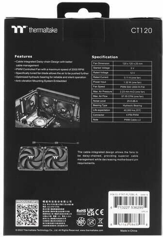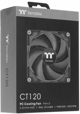THERMALTAKE Вентилятор CT120 2шт, 120мм, 4-pin, 2000об/мин, 25.8 дБ, черный, Ret [cl-f147-pl12bl-a]