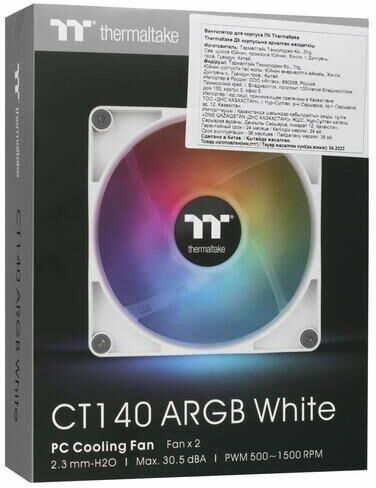THERMALTAKE Вентилятор CT140 Sync Reverse, 2шт, 140мм, 4-pin, 1800об/мин, 32.8 дБ, ARGB, черный, Ret