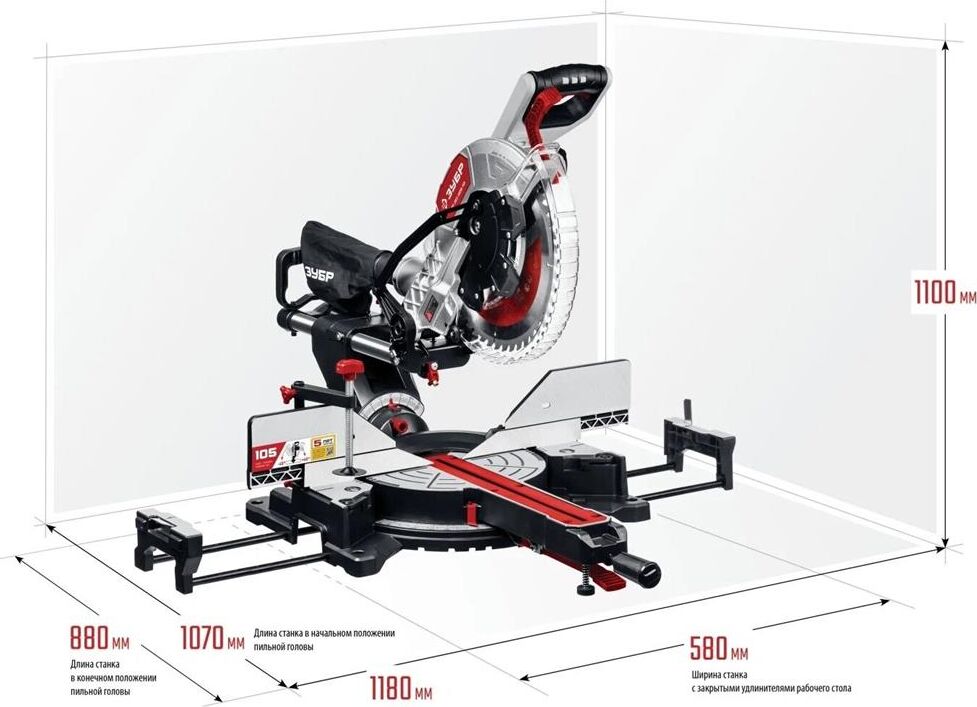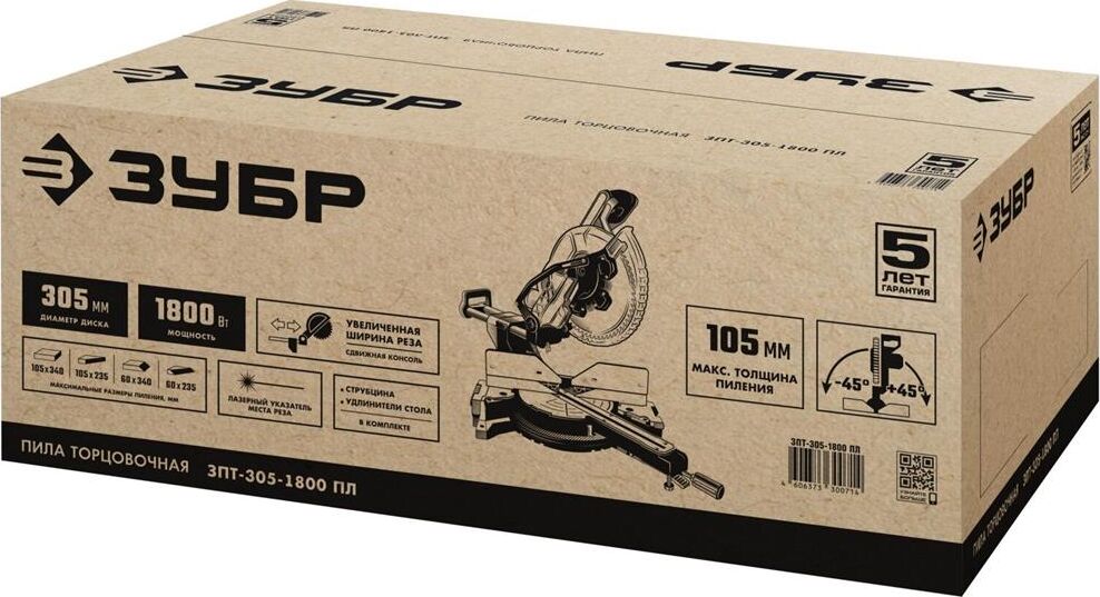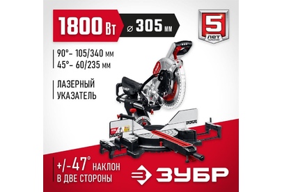 Торцовочная пила ЗУБР ЗПТ-305-1800 ПЛ пила торцовочная с протяжкой