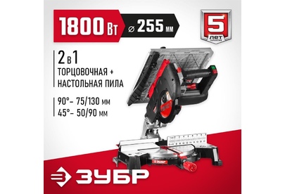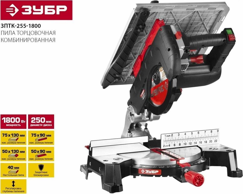 Торцовочная пила ЗУБР ЗПТК-255-1800 Пила торцовочная комбинированная