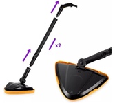 Пароочиститель напольный Kitfort КТ-9102-1 1500Вт черный/фиолетовый Kitfort КТ-9102 способен заменить паровую швабру, дезинфектор, стеклоочиститель, отпариватель. Горячий пар под давлением в 4 бара очищает разные поверхности, удаляет жир, известковые отложения, убивает патогенные микроорганизмы, отпаривает ткани. Мощность нагревателя 1500 Вт Максимальное давление пара 4 Бар Время нагревания 6 мин Емкость первого бака для воды 1.1 л Регулятор расхода пара на рукоятке пистолета Длина парового шланга 1.4 м Паровой пистолет есть Форсунка для мытья окон есть Насадки в комплекте Скребок для стекла используется для чистки окон, зеркал, кафеля. Струйная насадка подходит для чистки плинтусов, щелей и других углов. Щётки - для удаления стойких загрязнений. С тряпкой можно отпаривать одежду, шторы, мягкую мебель. И это далеко не всё! Принадлежности в комплекте В комплект, помимо различных насадок, входят также щётка для пола, тряпка, рамка для чистки ковров, удлинительные трубки, что делает К