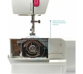 Тип машины: Электромеханическая; Тип челнока: Вертикальный; Тип петли: Полуавтомат; Количество швейных операций: 17; Количество петель: 1; Максимальная длина стежка: 4 мм; Максимальная ширина зигзага: 5 мм; Расположение катушечных стержней: Вертикальное; Встроенный нитеобрезатель; Переключатель нижнего транспортера; Два вертикальных катушечных стержня; Свободный рукав; Отсек для хранения аксессуаров; Светодиодное освещение; Максимальная скорость шитья: 750 ст./мин.; Потребляемая мощность: 60 Вт