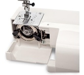 Вертикальный челнок, 17 операций, петля полуавтомат, LED подсветка, нитеобрезатель, отсек для аксессуаров