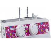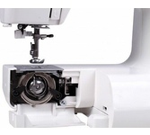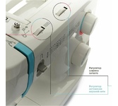 Электромеханическая швейная машина; 25 швейных операций: прямая строчка, зигзаг, эластичный зигзаг потайные строчки, трикотажная строчка, трикотажный зигзаг, декоративные строчки, оверлочные строчки, петля-автомат; Регулятор натяжения верхней нити; Регулятор ширины зигзага; Вертикальный челнок; Рычаг обратного хода; Металлические катушечные стержни; Легко пристегивающаяся лапка; Дополнительный подъём лапки; Встроенный нитеобрезатель; Встроенный нитевдеватель; Свободный рукав; Отсек для хранения аксессуаров; Светодиодное освещение; Длина стежка, мм: от 0 до 4; Количество петель1; Максимальная ширина стежка, мм: 5; Расположение катушечных стержней: Вертикальное; Регулировка длины стежка; Регулировка ширины зигзага