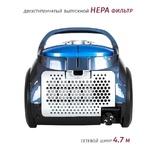 Пылесос циклонного типа, максимальная мощность: 2000 Вт, максимальная мощность всасывания: 340Вт, максимальная вместительность пылесборника: 3.5Л, легкая очистка контейнера, металлическая телескопическая трубка, регулировка мощности всасывания ,индикатор заполнения пылесборника, термостат, автоматическая смотка шнура, универсальная щетка «ковер/пол», насадка 2 в 1 , щелевая насадка , двухступенчатый выпускной фильтр, тип фильтра: HEPA , длина сетевого шнура: 5 м