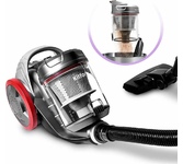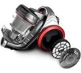 Пылесос циклонного типа, максимальная вместительность пылесборника: 2.5 л, максимальная мощность: 2200 Вт , максимальная мощность всасывания: 400 Вт, пониженный уровень шума, легкая очистка контейнера, металлическая телескопическая трубка, управление воздушным потоком на ручке, регулировка мощности всасывания, автоматическая смотка шнура, универсальная щетка «ковер/пол», тип фильтра: HEPA 12, радиус действия: 7 м, длина сетевого шнура: 4.5 м