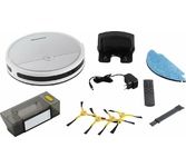 ТипРобот-пылесос Тип уборкисухая/влажная Мощность15Вт Уровень шума65дБ Работа с контейнером для пылиДА Объем пылесборника0.3л Режимы уборки пылесоса-роботаавтоматический (режим Зигзаг), локальный, по периметру, местная уборка, ручное управление, турборежим Режимы работы ограничителейМаксимальный порог препятствия 12 мм Общее количество насадок4шт Насадки в комплектеБоковые щеточки -4 шт. Тип электропитанияот аккумулятора Тип аккумулятораLi-Ion Емкость аккумулятора2000мAч Цветсеребристый Дополнительный цветбелый ОсобенностиРобот-пылесос с управлением через мобильное приложение. Ориентация в пространстве при помощи встроенного гироскопа