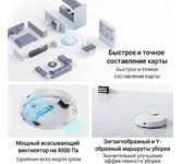 Тип уборки сухая, влажная Потребляемая мощность 45 Вт Мощность всасывания 5000 Па Емкость пылесборника 0.4 л Объем резервуара для воды 0.27 л Фильтр тонкой очистки есть Типы датчиков и сенсоров LDS-датчик, датчик обнаружения препятствий, датчик перепада высоты, датчик распознавания порогов, инфракрасный луч. Наличие боковых щеток есть Наличие дисплея нет Управление со смартфона есть Пульт ДУ нет Ограничитель зоны уборки есть Уборка по расписанию есть Построение карты помещения есть. Источник питания аккумулятор Тип автономных элементов питания Li-Ion Емкость автономных элементов питания 3200 мАч Зарядное устройство док-станция.