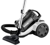 Пылесос циклонного типа, мультициклон,, максимальная мощность 2200 ватт, объем контейнера 3 литра, моющийся фильтр HEPA, регурировка уровня мощности, управление воздушным потоком на ручке, уровень шума 79 дБ, металлическая телескопическая трубка, универсальная щетка ковер/пол, щелевая насадка 2 в 1, насадка для мягкой мебели, держатель для аксессуаров, автоматическая смотка шнура, длина кабеля 6 метров
