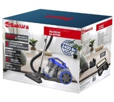 2400Вт, макс.мощность всасывания 450 Вт, HEPA-фильтр, уровень шума ?78 дБ, контейнер д/сбора пыли 2.0 л (циклонная система), индикатор заполнения пылесборника, металлич. телескопич. труба, автоматическое сматывание шнура. Многофункциональные насадки: насадка ковер/пол, насадка для мебели, щелевая насадка. Цвет корпуса: синий/черный