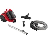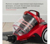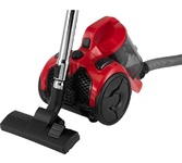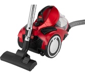Мощность максимальная: 2400Вт, циклонная система очистки, макс.мощность всасывания: 450 Вт, уровень шума ≤79 дБ, контейнер д/сбора пыли 3,0л, удлинительная металлическая телескопическая труба, длина шнура: 5м (до желтой метки 4м). Входной HEPA-фильтр + поролоновый фильтр, выходной HEPA-фильтр. Комплектация: щетка напольная двухпозиционная, насадка щелевая 2в1. Цвет: красно-серый.