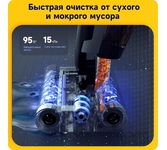 Основной цвет серый Основные характеристики Беспроводной есть Отсоединяемый ручной пылесос нет Тип уборки влажная, сухая Сбор жидкости есть Тип пылесборника контейнер Фильтр тонкой очистки есть Емкость пылесборника 0.6 л Емкость бака для воды / моющего средства 0.62 л Расположение пылесборника / мотора снизу Регулятор мощности есть Индикация автоматический режим, заполнения пылесборника, режима работы Радиус действия не ограничен Турбощетка в комплекте нет Питание и производительность Потребляемая мощность 160 Вт Сила всасывания 15000 Па Тип питания от аккумулятора Тип аккумулятора Li-Ion Емкость аккумулятора 4000 мА*ч Максимальное время работы от аккумулятора 30 мин Время зарядки 270 мин Количество аккумуляторов 1 шт Зарядное устройство в комплекте есть Особенности Функции и возможности голосовой помощник, интеллектуальный LED-дисплей, режим стерилизации Защита от перегрева нет Дополнительная информация Насадки в комплекте роликовая щетка х 3 шт Место для хранения насадо