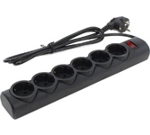 Защита от перегрузки и скачков напряжения Сетевой Колодка на 6 розеток. Длина провода 5 м. Провод ПВС с сечением 3*0,75 мм? Розетки с заземление Кнопка ВКЛ/ВЫКЛ Макс нагрузка 2200 Вт Сила тока 10А Негорючий пластик Цвет- черный