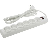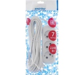 Удлинитель, количество розеток - 3, номинальный ток, А - 10, номинальное напряжение: 250 В; частота: 50 Гц; тип провода: ПВС 2x1,0мм; материал корпуса: АБС-пластик; климатическое исполнение: УХЛ-3; степень защиты от влаги и пыли: IP-20; длина провода - 7 м.