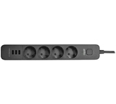 Сетевой фильтр 4 евророзетки и 3 USB порта на 2.4A, Длина 2м, Номинальный ток 10А, Максимальная нагрузка 2500Вт, Варисторная защита и защитные шторки для детей. Есть крепление на стену.