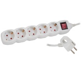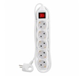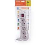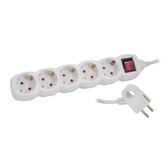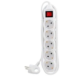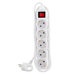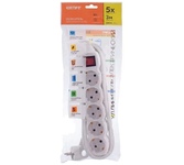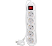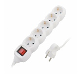 Сетевой фильтр с общим выключателем. Макс. мощность 2300Вт, 10А, 5 евророзеток с заземлением, защитные шторки, длина кабеля 1.8 метра. Цвет белый.